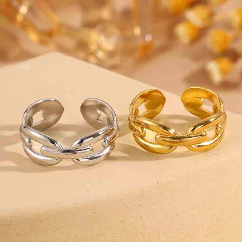 Beliebter offener Ring in Herzform aus Titan und Stahl im Hip-Hop-Stil mit einzigartigen, sich kreuzenden Linien in Herzform. Edelstahlring.