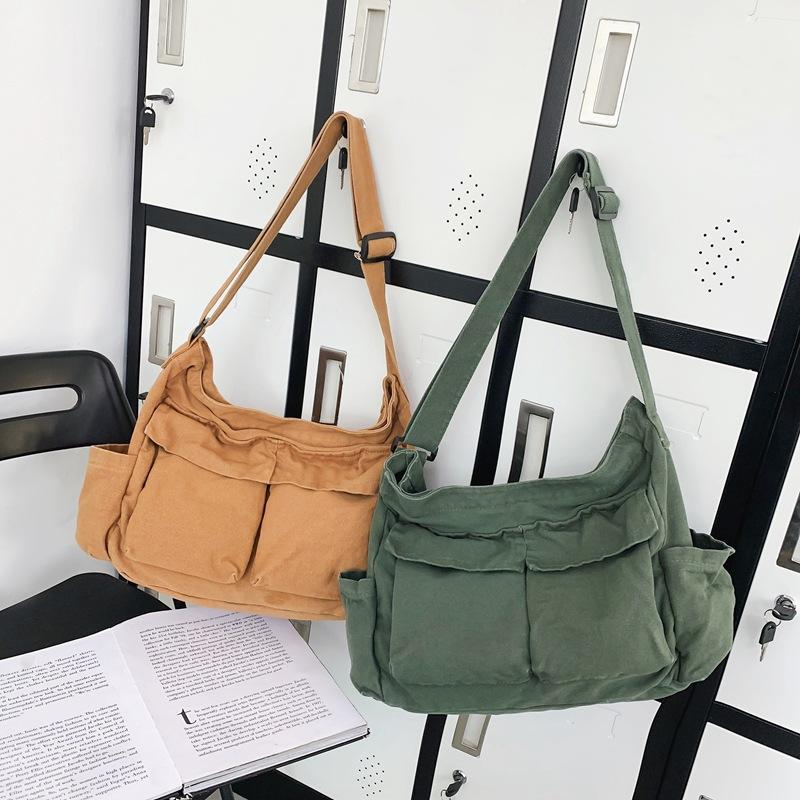 New literary girl shoulder bag ins versatile large capacity canvas tooling style student class messenger bag