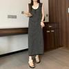 Ärmelloses Colorblock-Zweiteiler-Design Sommerkleid in Übergröße für Damen: Lockeres & Schlankmachendes Langes Kleid