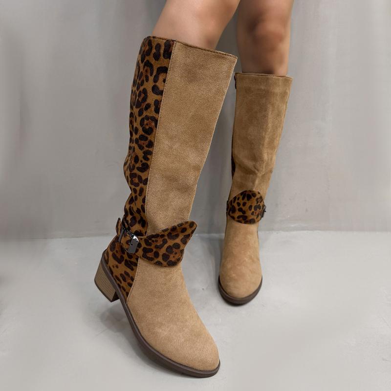 Brown Leopard High Boots Women Boots Platform Shoes for Women Autumn Winter Sexy Mid-calf Cowboy Riding Boots Botas Mujer 2026
