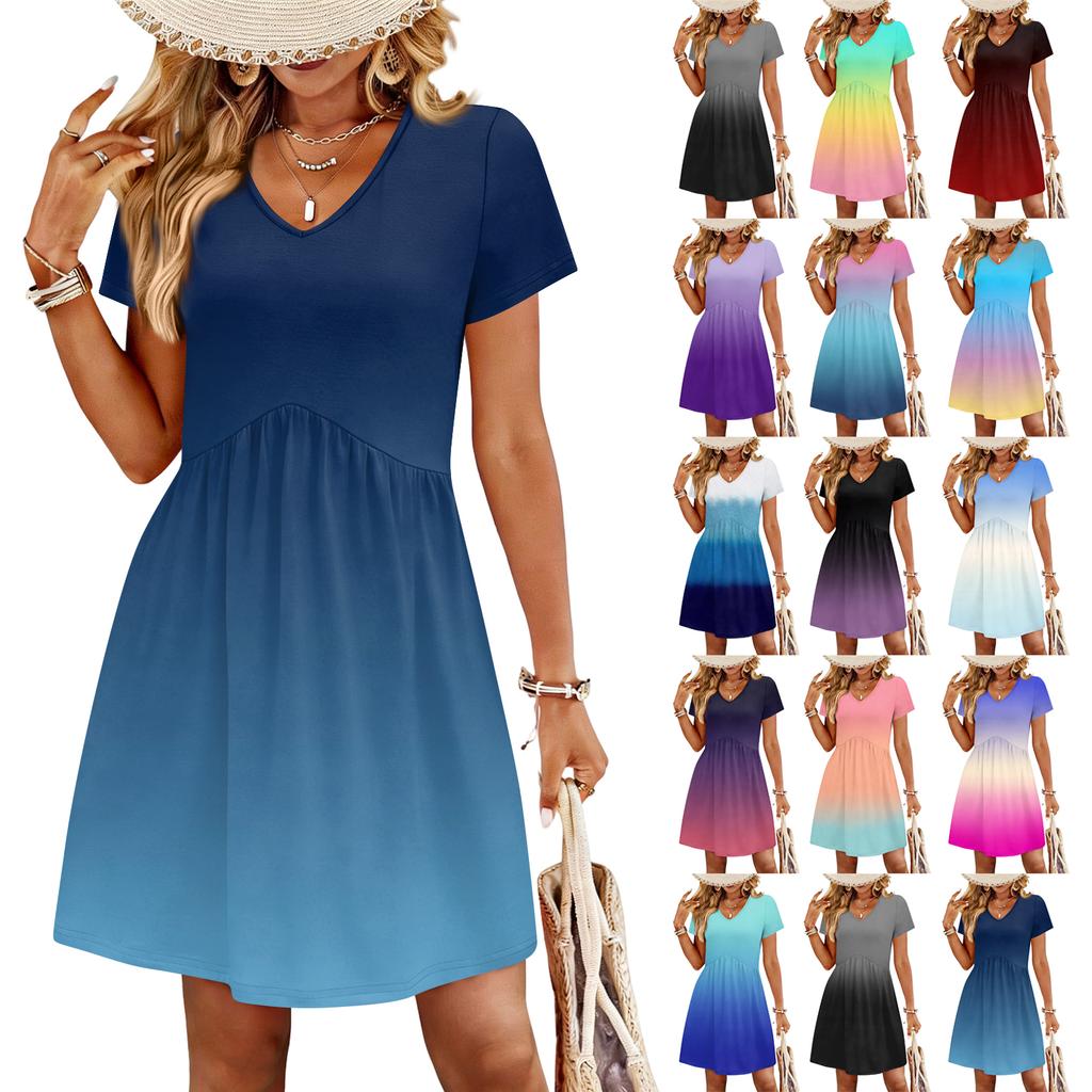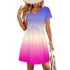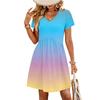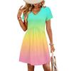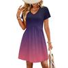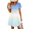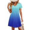 Modisches Damenkleid mit Print, V-Ausschnitt, kurzärmelig, locker, lässig, für den Strandurlaub