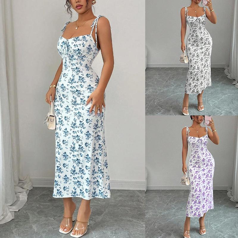Embrace the essence of summer with this stunning floral spaghetti strap dress. Designed in a European and American style, this dress exudes a sweet and elegant charm. Its slim fit and hip-hugging silhouette beautifully accentuate your figure, while the long length adds a touch of sophistication. Made from high-quality polyester, this dress offers both comfort and durability, making it a perfect choice for warm-weather occasions. Ideal for both casual outings and more formal events, its timeless floral pattern and delicate spaghetti straps ensure you look effortlessly chic.