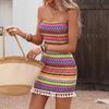 Werten Sie Ihre Sommergarderobe mit diesem atemberaubenden trägerlosen Kleid auf, gefertigt aus weichem, hochwertigem Polyestermaterial für eine bequeme Passform.. Das lebendige ethnische Streifenmuster verleiht einen Hauch von exotischem Flair, während spielerische Quasten bei jedem Schritt schwingen, was es ideal für Urlaubsausflüge oder zwanglose Treffen macht.. Die Stricktextur des Kleides unterstreicht seinen einzigartigen Reiz und sorgt dafür, dass Sie die ganze Saison über schick und stilvoll bleiben.. Perfekt, um die warmen Sommergefühle mit Zuversicht und Eleganz zu genießen.