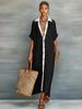 Women's Color Block Loose Cotton Linen Shirt Dress - European & American Fashion 2026