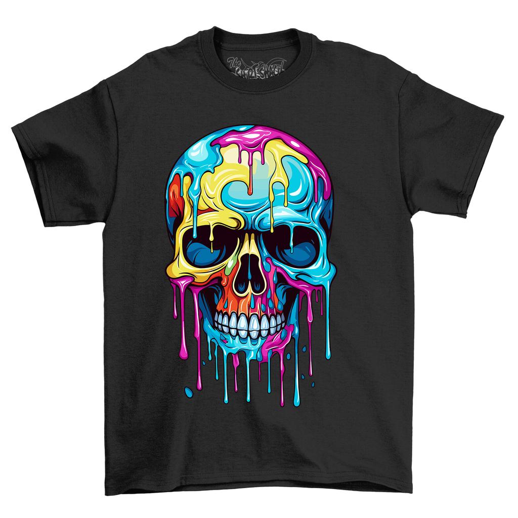 Skull Paint Drip Design T-Shirt Mens Womens Tees Top - Funny and Spooky! Unisex Printed Design. A vib