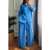 Entdecken Sie Komfort und Stil mit diesem lässigen Leinenhemd und Hosen-Set in Übergröße. Dieses Set aus hochwertigem Leinen bietet eine glatte und atmungsaktive Passform, perfekt für die Übergangszeiten im Frühling und Herbst.. Das einfarbige Design und der lockere Schnitt sorgen für eine entspannte, sportliche Ausstrahlung und ermöglichen es Ihnen, sich mit Leichtigkeit und Selbstvertrauen zu bewegen.. Egal ob beim Entspannen zu Hause oder bei einem Ausflug, dieses vielseitige Set sorgt dafür, dass Sie mühelos schick und bequem bleiben.