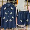 Stilvolles Damen-Zweiteiler-Denim-Set - Strickjacke & Shorts, Europäisch inspirierter lockerer Schnitt