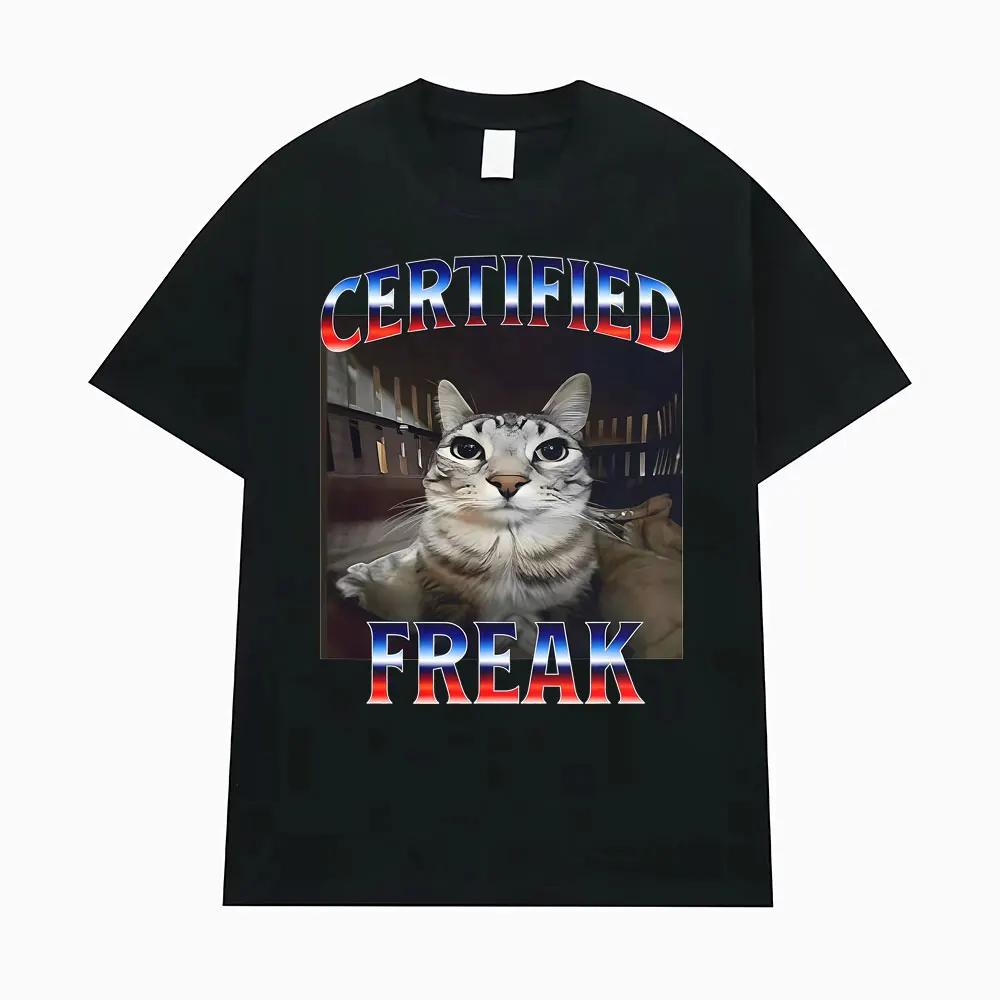 Certified Freak Funny Cat Meme T Shirts for Men Women Fashion High Quality T-shirt Male Oversized Comfort Short Sleeve Tee Shirt