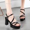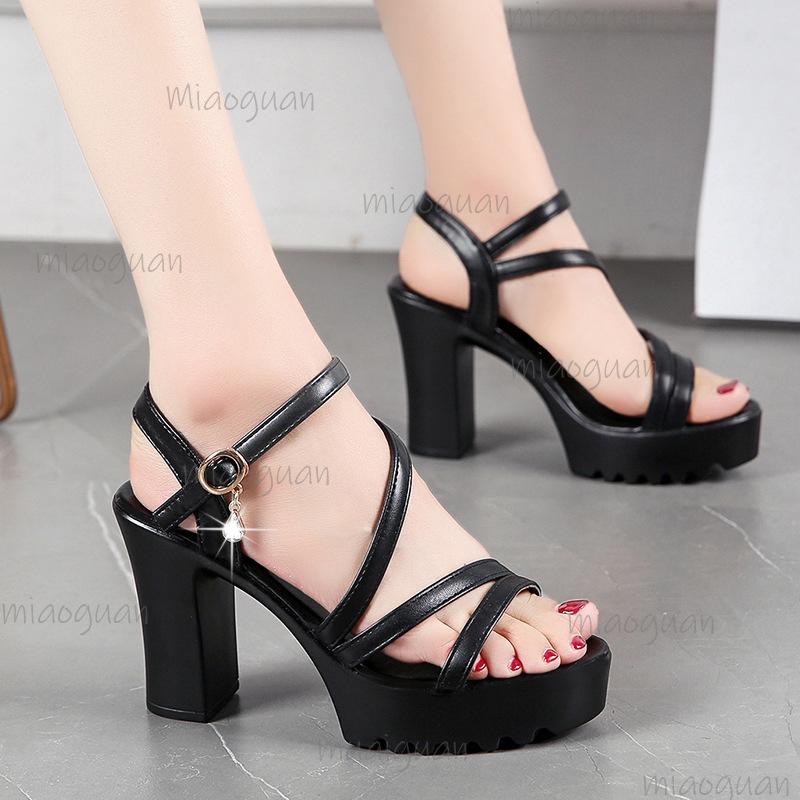 Women's Chunky Heel Platform Sandals Ankle Buckle Non-Slip Thick Sole Summer High Heel Dress Shoes Black/White Size 35-40