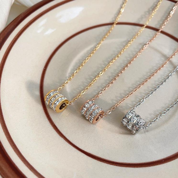 Three Rows Of Diamonds Full Of Diamonds Small Waist Necklace Women'S Versatile Collarbone Chain Temperament Versatile Titanium Steel Necklace