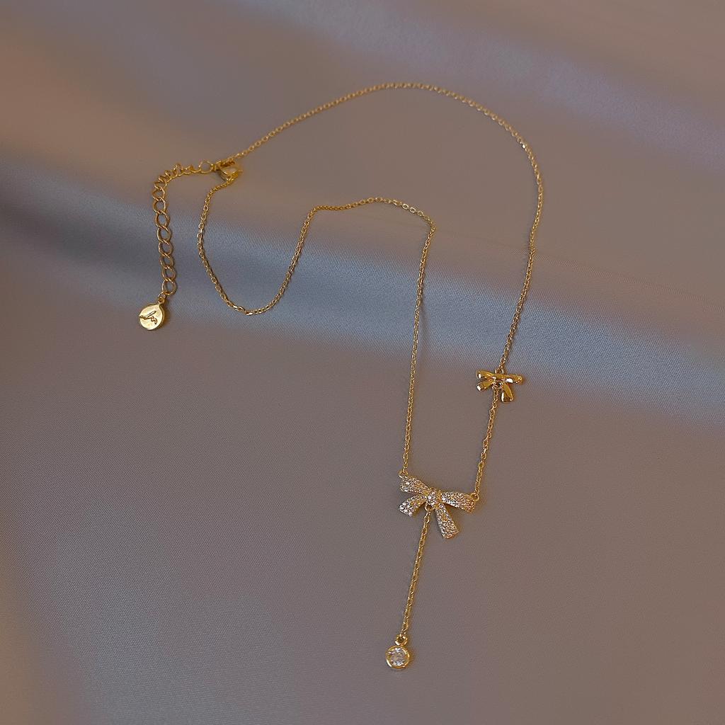 Early Spring Micro-Inlaid Bow Necklace Women'S Fashion Design Sense Collarbone Chain Pendant Neck Chain Accessories