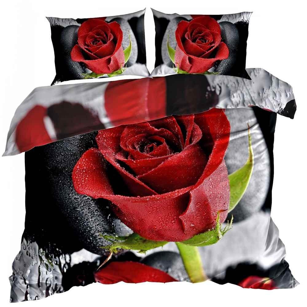3D Baumwollsatin Bettwäsche 160x200cm ROTE ROSE