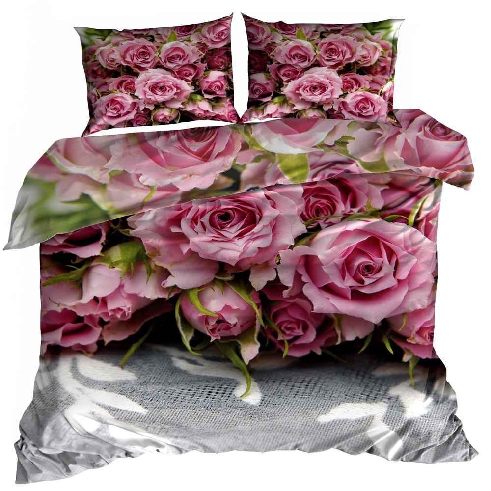 3D cotton satin bedding 140x200cm PINK ROSES