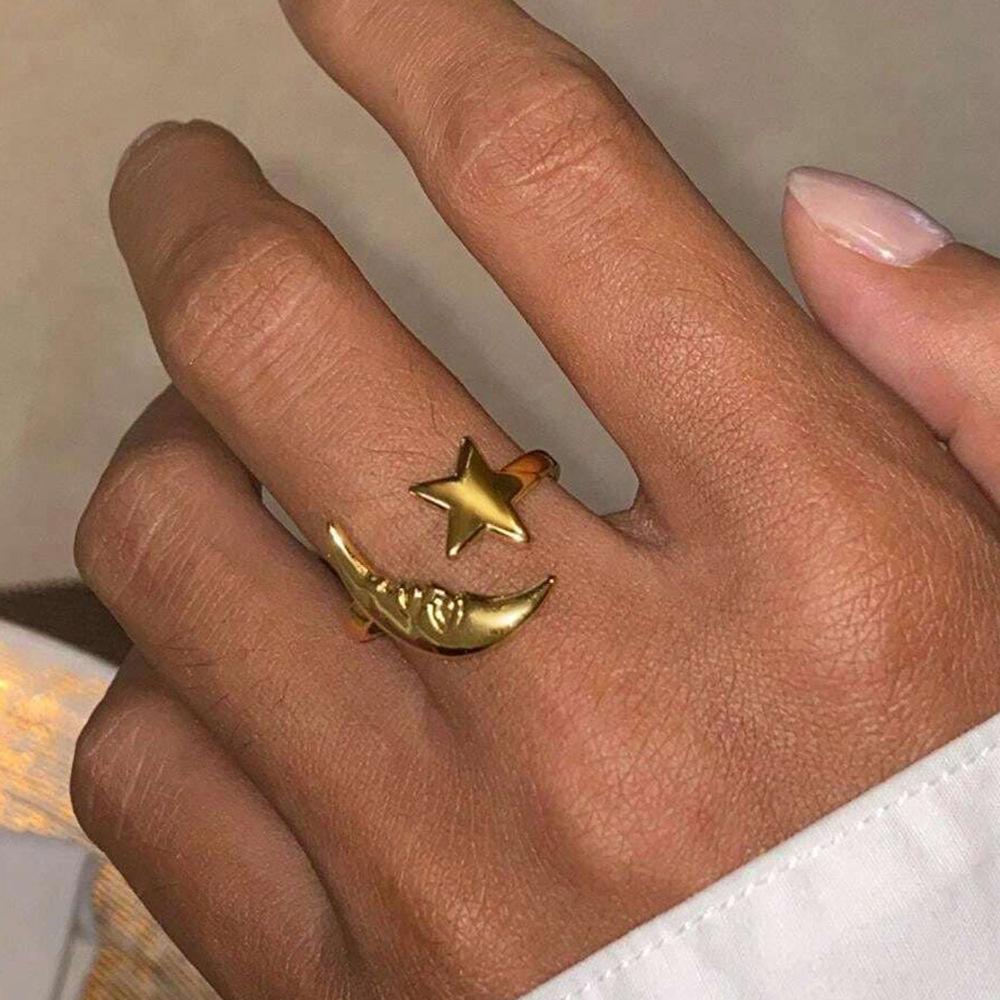 Women's Retro Moon Star Open Adjustable Ring Minimalist Stainless Steel Gold Color Finger Rings Waterproof Jewelry Wholesale