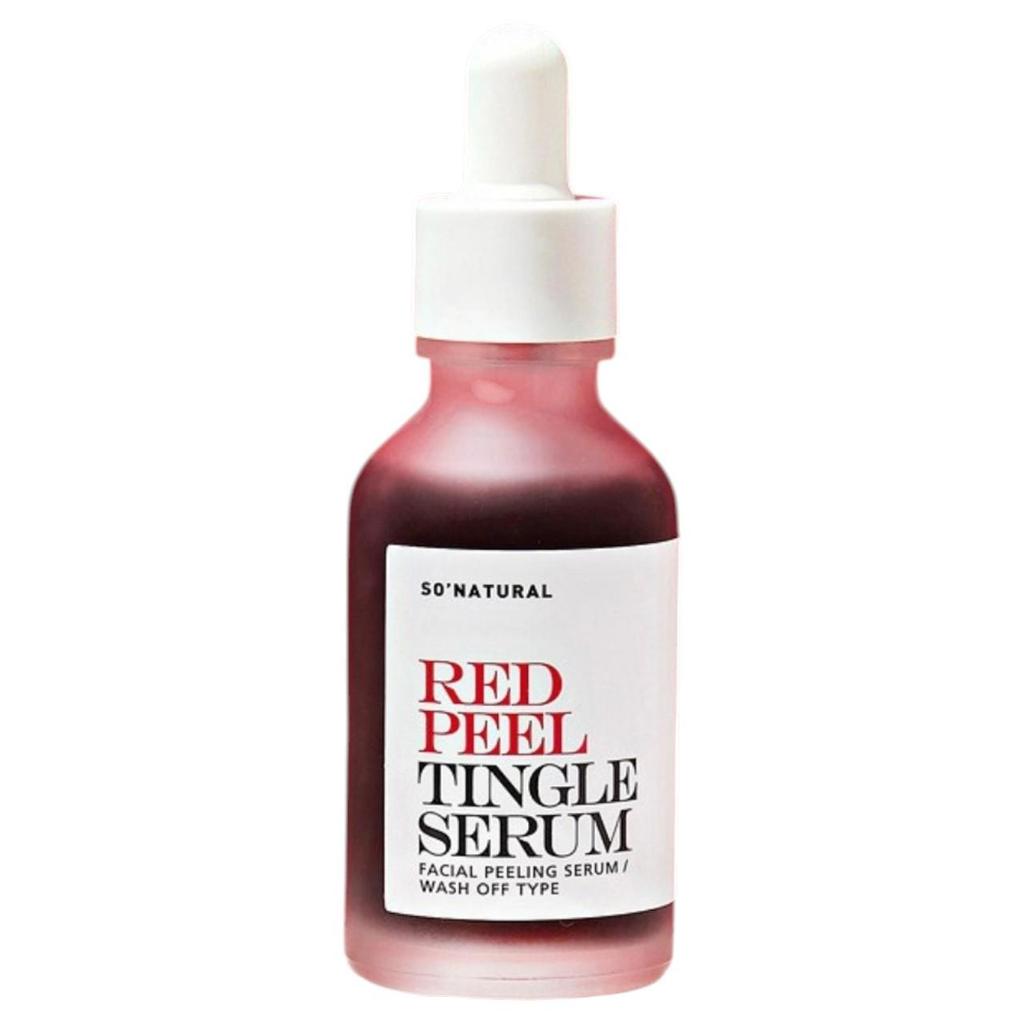 Experience a powerful skin transformation with the So Natural Red Peel Tingle Serum, a cult-favorite wash-off exfoliator known for its signature "tingling" sensation. Formulated with an optimal blend of AHA and BHA, it effectively dissolves dead skin cells, clears clogged pores, and resurfaces uneven skin texture. This vibrant red serum promotes skin turnover to reveal a brighter, smoother, and more youthful complexion in just one use.
