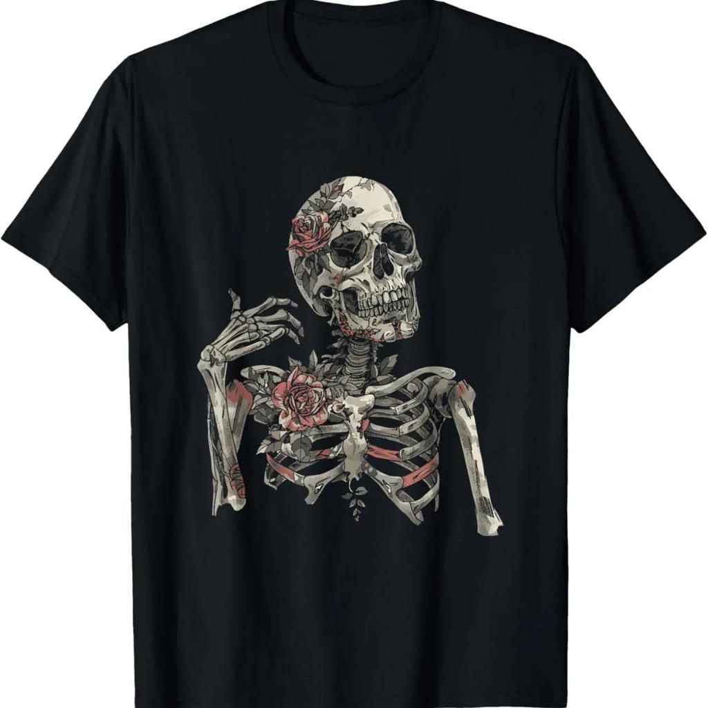 Totenkopf Halloween Skelett mit Rosen - Totenkopf Motiv T-Shirt