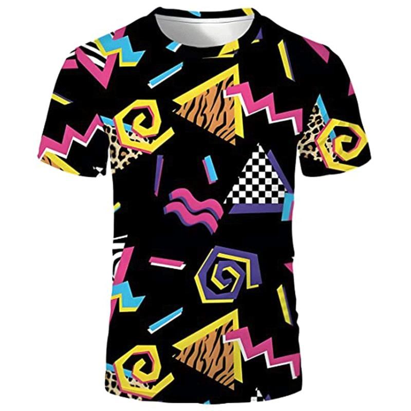 80s 90s 3D Print T-Shirts Men Hip Hop Short Sleeve T Shirt Neon Disco Party Costume Oversized Tees Harajuku Y2k Top Kid Clothing