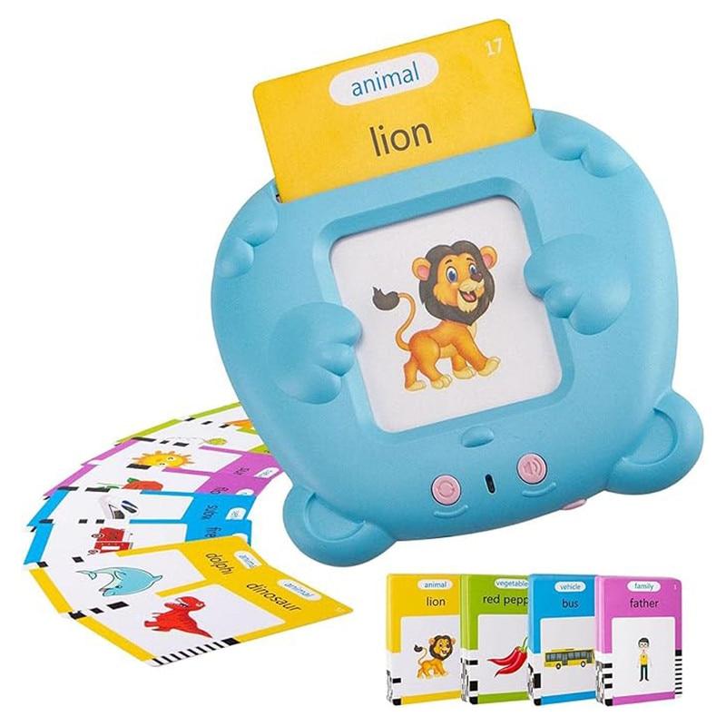 Montessori Englisch Lernspielzeug für Kinder, Wortlernmaschine mit 112 Lernkarten, Blaues Lernspielzeug für Kleinkinder