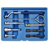 Das Kit enthält Stifte, die auch für andere Benzin- und Dieselmotormodelle passen.. Das Kit enthält: 1. Spannrollen-Einstellwerkzeug 2. Schwungrad/Antriebsscheibe Feststellwerkzeug 3. Spannereinstellung 4. Spannereinstellung 5. Spannrollen-Blockierwerkzeug 6. Nockenwelle/Nockenwellenstift Kurbelwellenrad