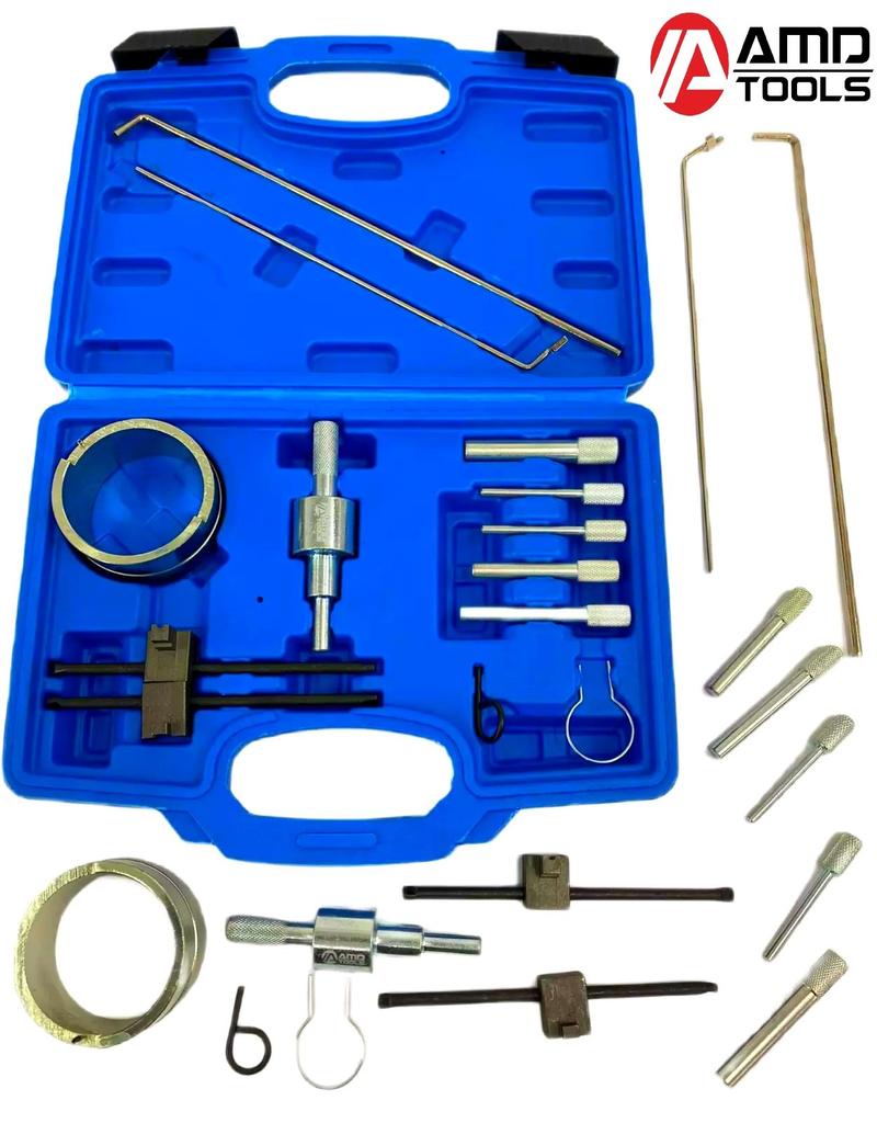 PROFESSIONELLES STEUERZEITWERKZEUG-SET FÜR PEUGEOT / CITROEN 1.8 2.0 16V Marke:AMD-WERKZEUGEErforderlich für den Austausch des Zahnriemens bei 1,8- und 2,0-Benzinmotoren.