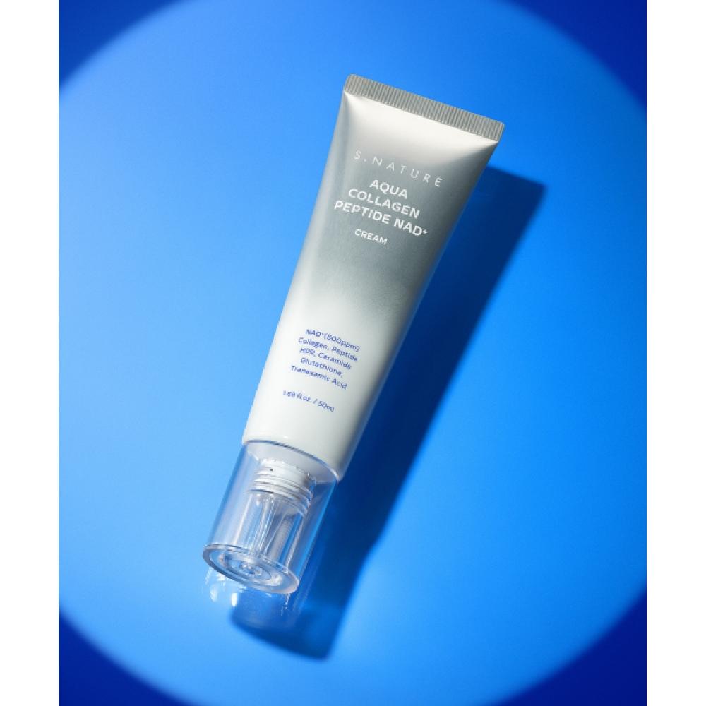 S.NATURE Aqua Kollagen Peptid NAD+ Creme 50ml ist eine Premium-Anti-Aging-Creme, die sich auf intensive Feuchtigkeitsversorgung und die Verbesserung der Hautelastizität konzentriert.. Mit Aqua Kollagen-Peptiden und NAD+ spendet es der Haut tiefenwirksame Feuchtigkeit und fördert die Kollagenproduktion, wodurch Hautalterung effektiv bekämpft wird.. Mit einem Fassungsvermögen von 50 ml ist es für alle Hauttypen geeignet und wird besonders für trockene und weniger elastische Haut empfohlen.