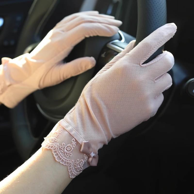 Sunscreen lace gloves women's summer ice silk thin touch screen gloves outdoor driving cycling gloves
