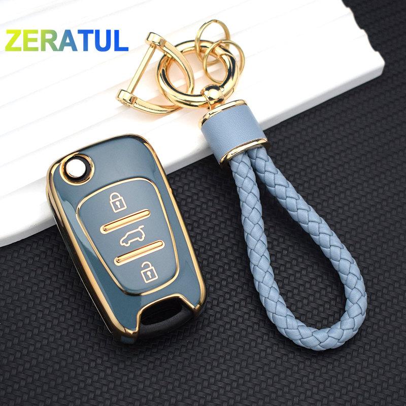 For KIA RIO Soul Optima Ceed K2 K3 K5 Pride For Hyundai Elantra Accent i20 i30 ix35 Car Flip Key Case Cover Shell Fob Keychain