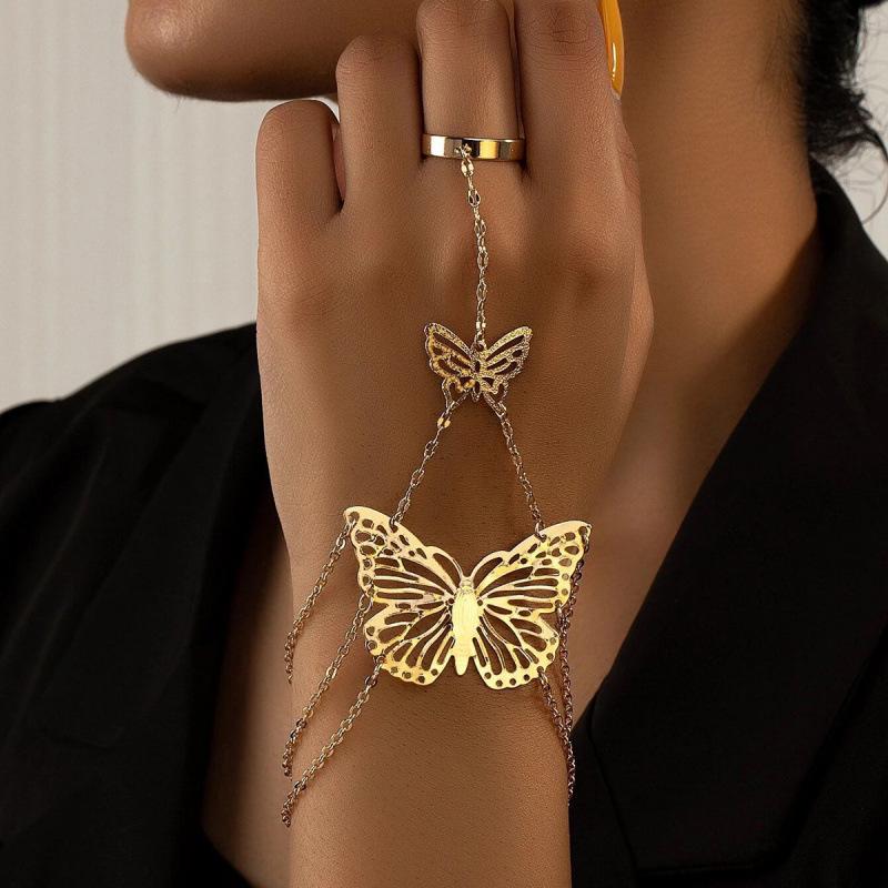 Baroque Style Butterfly Bracelet-Ring Combo in Retro Court Fashion