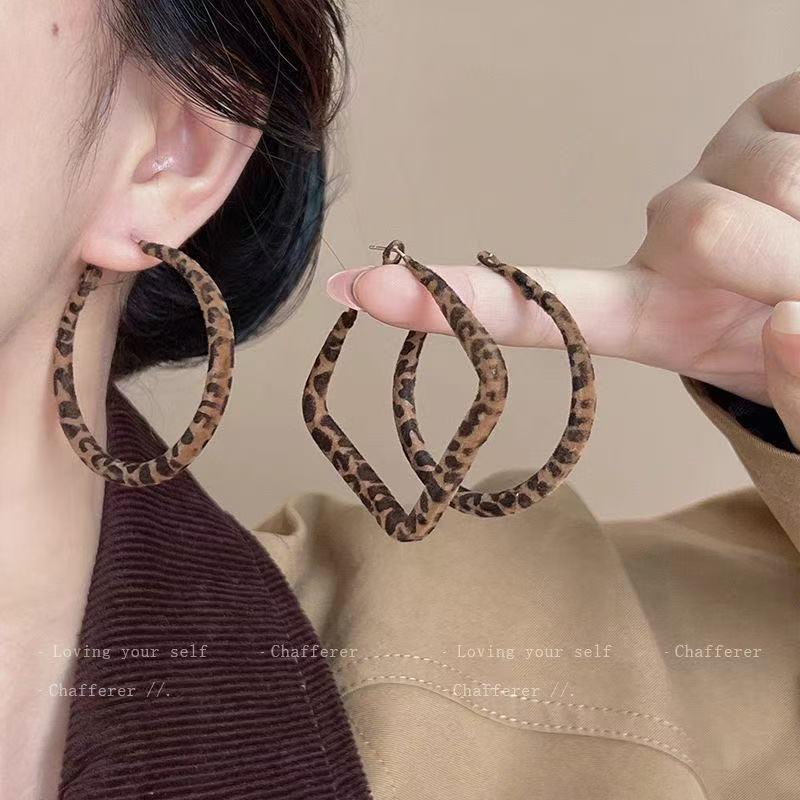 Geometrische Creolen mit Leopardenmuster für Damen: Herbst/Winter High-End, Süße & Coole Nieten, Gesichtsschlankmachende Modeaccessoires