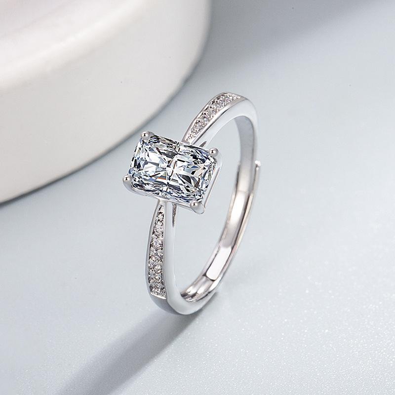 Japanese & Korean Women's Moissanite Square Eternal Micro-Paved Open-End Ring