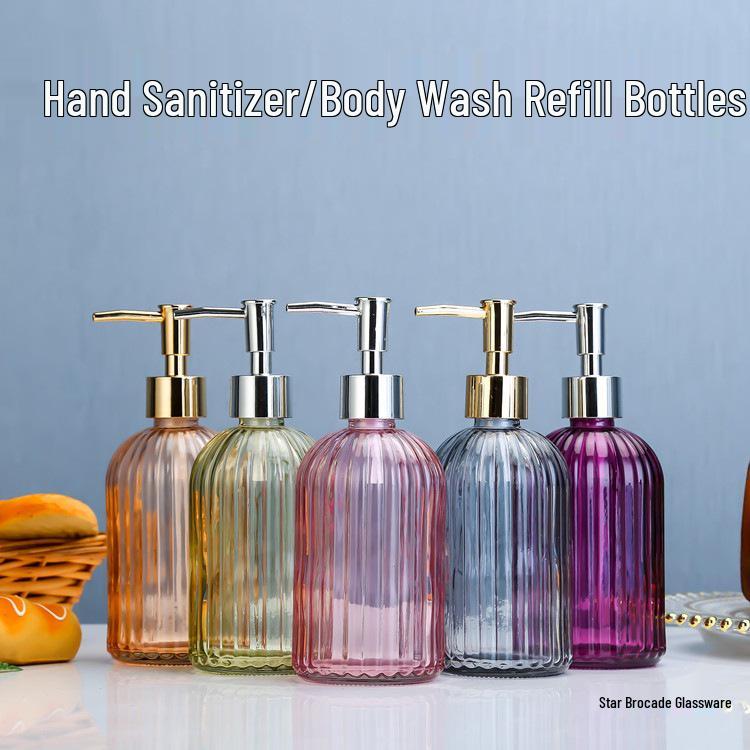 Nachfüllbare Glaspumpe für Flüssigseife und Duschgel mit Längsstreifen-Design