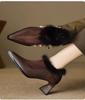 2025 Herbst und Winter neue Nerzhaar dicker Absatz weiche Oberfläche Samt tiefer Ausschnitt Einzelne Schuhe spitzer hoher Absatz vielseitig warm Damen Stiefeletten