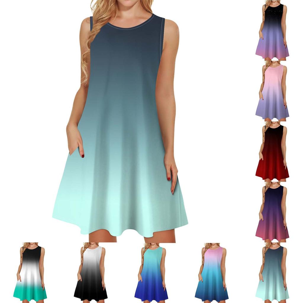 Damen Sommerkleider Lockerer U-Ausschnitt Ärmelloses Sommerkleid Kleid Mit Taschen