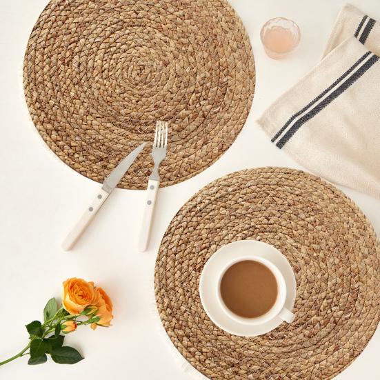 Diese wiederverwendbaren Bauernhaus-Tischsets sind robust, langlebig und für den langfristigen Gebrauch konzipiert.. Hergestellt aus natürlichen gewebten Materialien, bieten sie eine ausgezeichnete Hitzebeständigkeit und Schutz vor Verbrühungen, was sie ideal für Wasserbecher, Teekannen und Speiseteller macht.. Ihre ebene, stabile Oberfläche verhindert Verschüttungen und hält Ihre Tischplatte sauber, während das schlichte, rustikale Design verschiedene Einrichtungsstile ergänzt..