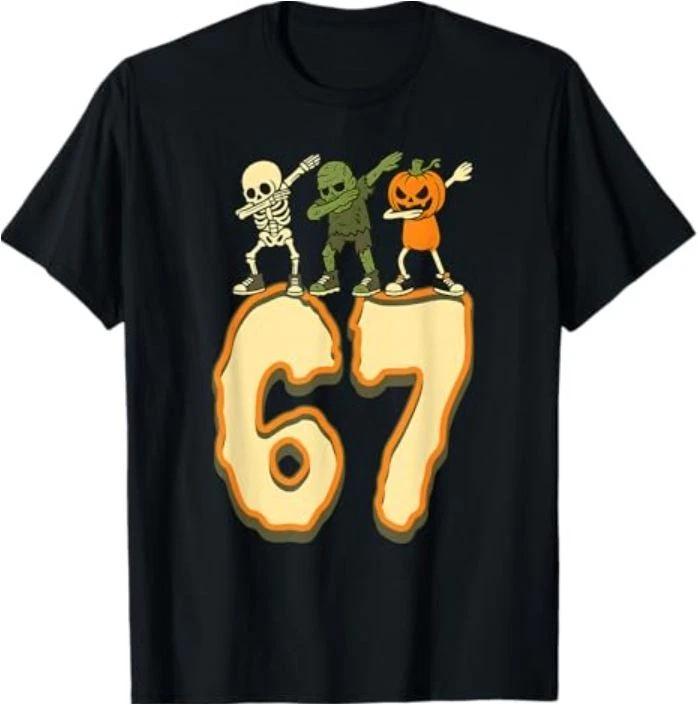 67 Halloween Meme 6 7 Zahlen Sechs Sieben Lustiges Skelett T-Shirt