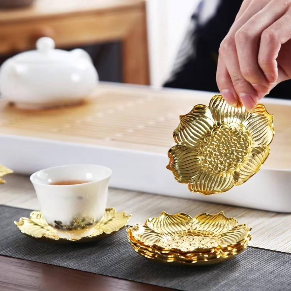 Chinesischer Stil Retro Metall Untersetzer Elegant Exquisit Isolierunterlage Hitzebeständig Goldener Tassenhalter Heimdekoration