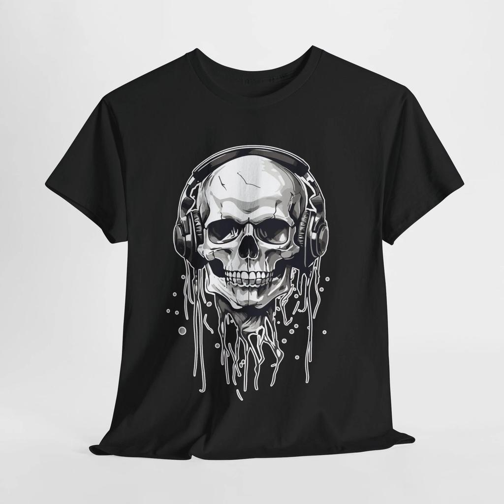 MELTING SKULL HEADPHONES MUSIC LOVER AWESOME TSHIRT Unisex Heavy Cotton Tee