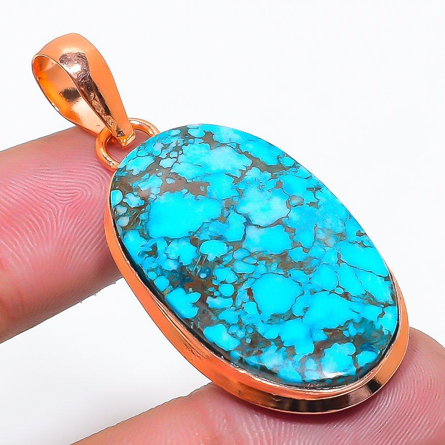 Natural Tibetan Turquoise Gemstone 925 Sterling Silver Pendant 2.01" AP-14395