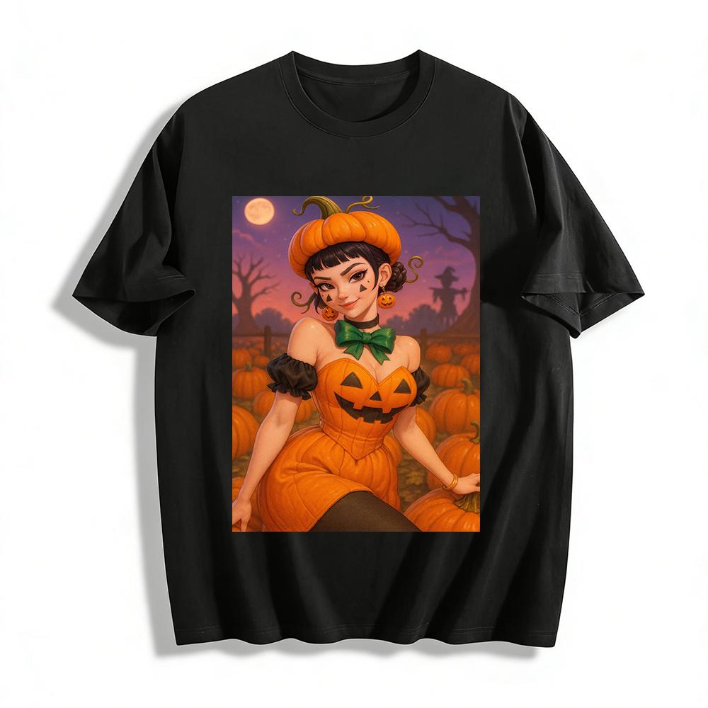 Halloween Pumpkin Themed Printed Top Playful Pumpkin Girl Festival Vibe Holiday Outfit Pure cotton T-shirt