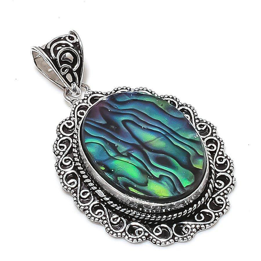 Natural Abalone Shell Gemstone 925 Sterling Silver Jewelry Pendant 2.25" ETC-14044
