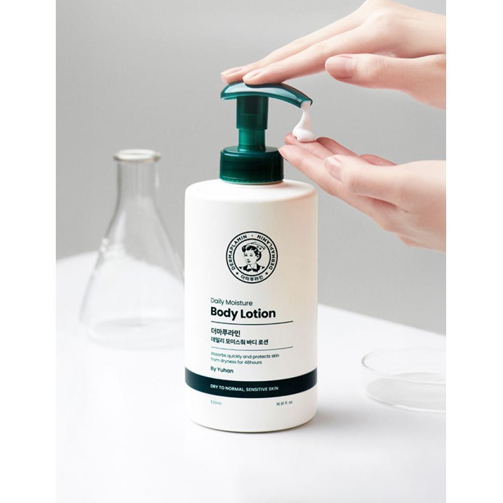 Dermapuran Daily Moisture Body Lotion 500ml is a daily moisturizing lotion suitable for all skin types. Certified by Germany's Dermatest for skin irritation assessment, this product proves its safety and has a customer satisfaction score of 4.9. This lotion features a lightweight texture that quickly absorbs into the skin, preventing dryness.