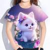 Children's Clothes 3d Print Kawaii Cat Pattern T Shirts Short Sleeve Tops 2026Kids Clothing Girls Boys Clothes 2 To 8 Years