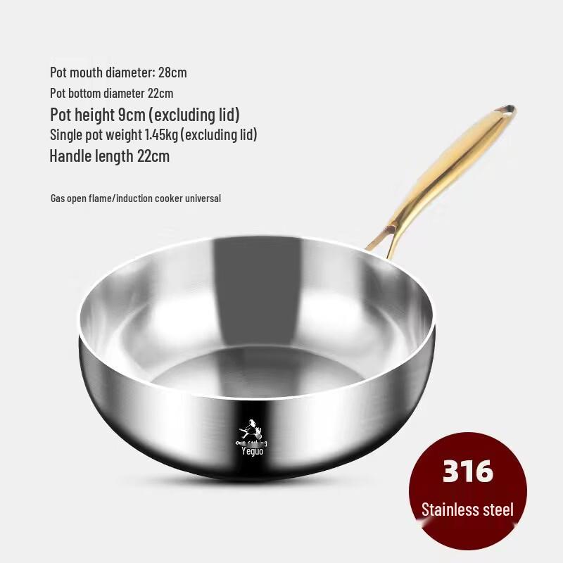ZISIZ 316 Stainless Steel Flat-Bottom Frying Pan