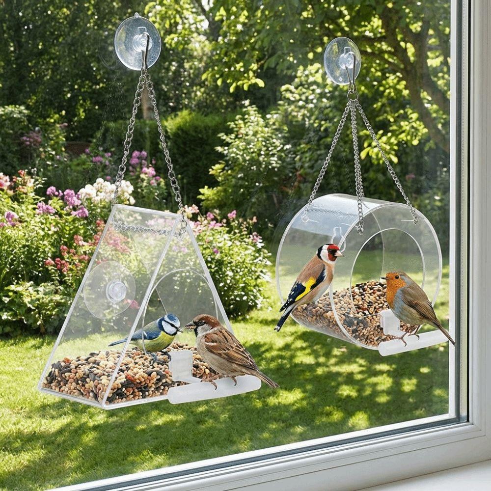 Wasserdichter hängender Acryl-Vogelfutterspender Starke Saugnapf Transparente Wildvogelhaus Große Kapazität mit Haken