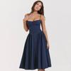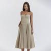 European and American Retro Dress, Slim-Fitting, Sexy Backless Mid-Length Dress, Off-The-Shoulder Neckline, Thin Straps, Mid-Waist Slip Dress
