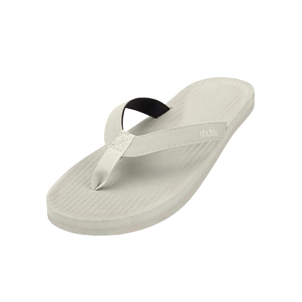 The Indosole Essential Flip Flops - Sea Salt / Sea Salt Slippers are available in ivory color for both men and women. This product boasts excellent durability and lightweight design, featuring a distinctive Y-shaped strap structure typical of flip flops, providing comfortable wear. With a design that differentiates it from earlier models, it serves as an ideal slipper for various outdoor environments.