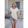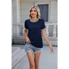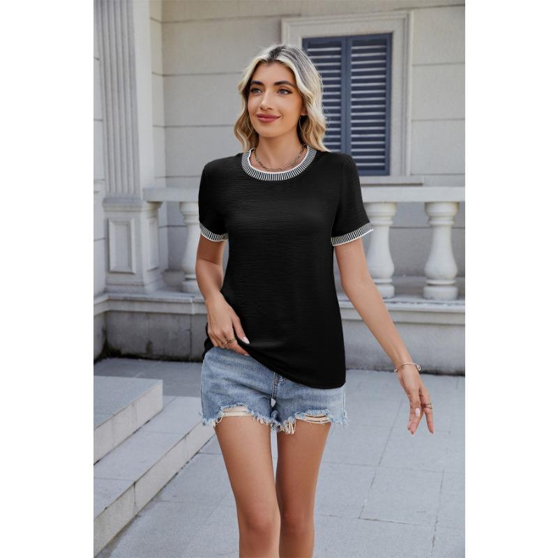 Summer new style simple threaded pullover round neck short sleeve solid color women's clothing