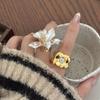 Gold Plated Peony Rhinestone Rings Ancient Copper Floral Adjustable Ring Three-dimensional Chinese Style