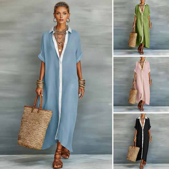 Das einfarbige Design strahlt schlichte Eleganz aus und lässt sich leicht mit Halsketten, Armbändern, Ohrringen, gewebten Taschen, Sandalen oder High Heels kombinieren.. Ideal für verschiedene Anlässe, einschließlich Bürokleidung, Freizeitaktivitäten, Urlaube, Partys, Hochzeiten, Abschlussfeiern und Strandtage. Dieses vielseitige Kleid vereint mühelos Komfort und Mode für jeden Anlass.