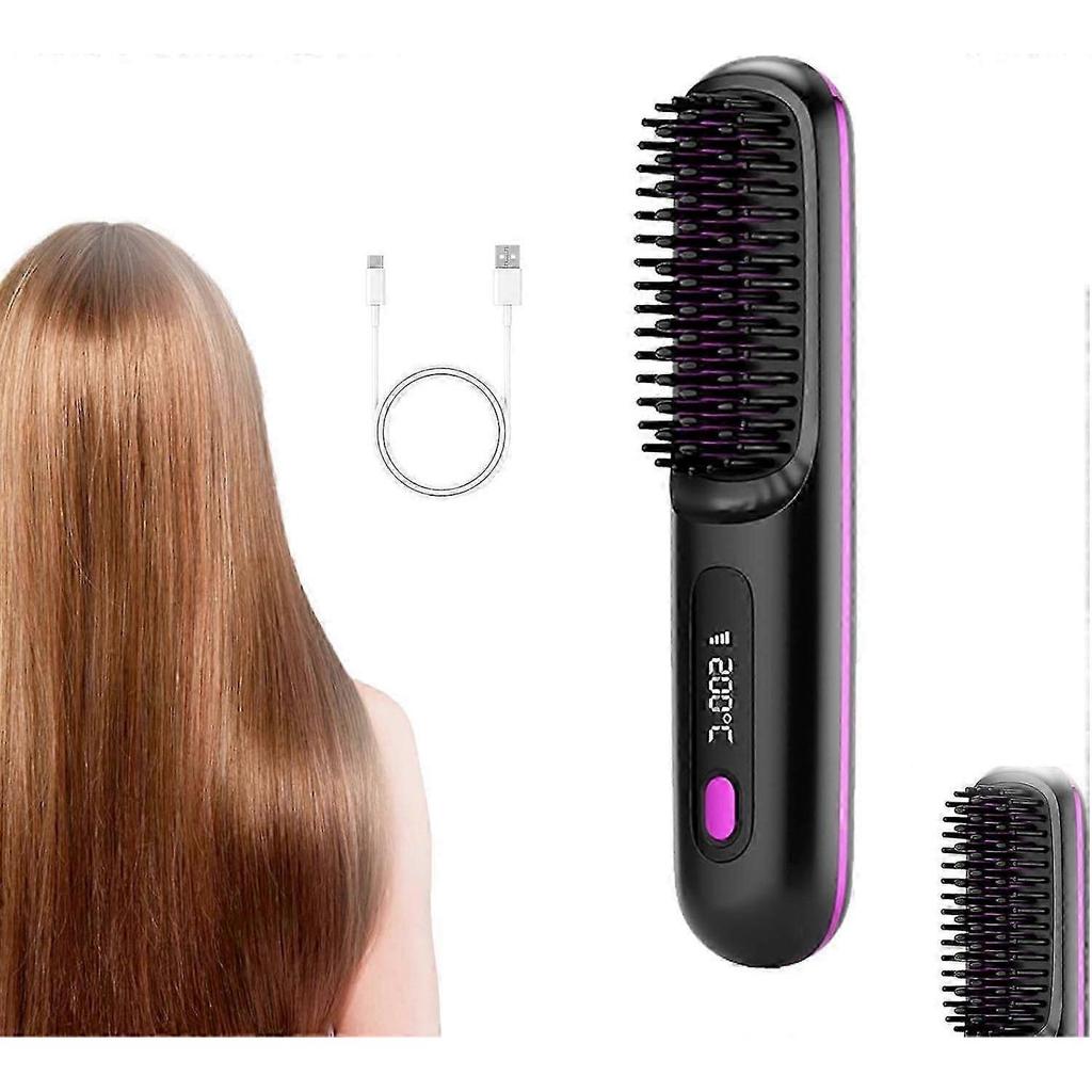 Cordless Negative-ion Hair Straightener Brush - Anti Scald Salon Styling Comb